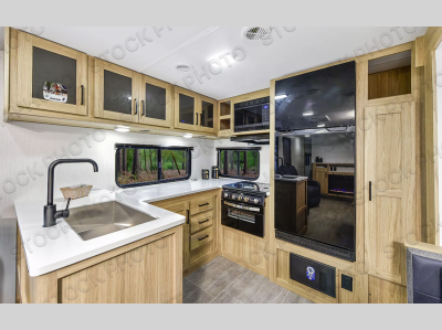 It will be effortless to enjoy time at the campground with interior comforts, such as vinyl flooring throughout, durable, residential-inspired kitchen countertops, and solid hardwood cabinet doors. The Camping in Comfort Package will add to each excursion with an on-demand tankless water heater, stabilizer jacks, marine grade exterior stereo speakers, and LED lights both inside and out!
