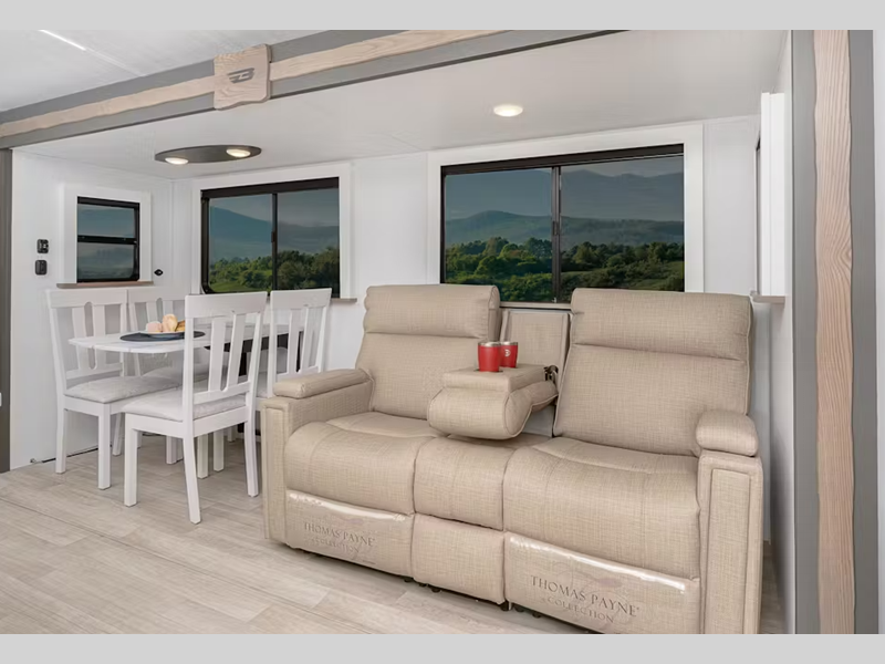 Sleeps 9 Slides 3 Length 37 ft 11 in Ext Height 11 ft 4 in Interior Color Tranquil Timber Hitch Weight 905 lbs Dry Weight 8409 lbs Cargo Capacity 2091 lbs Fresh Water Capacity 54 gals Grey Water Capacity 76 gals Black Water Capacity 76 gals Tire Size ST225/75R15E Furnace BTU 30000 btu Number Of Bunks 2 Available Beds Queen Refrigerator Type 12V Double Door Refrigerator Size 10 cu ft Cooktop Burners 3 Number of Awnings 1 LP Tank Capacity 20 lbs Water Heater Type Girard Tankless AC BTU 15000 btu TV Info LR 12V Smart TV Axle Count 2 Number of LP Tanks 2 Shower Type Radius Similar Floorplans